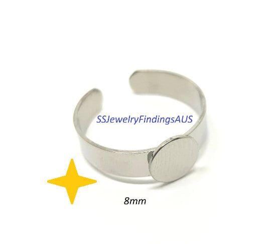 1 Piece Stainless steel 8mm Ring Pad Cabochon Setting Size 8 Adjustable Hypoallergenic