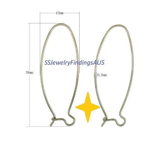 10 Pairs Stainless Steel Ovaloid Kidney Earwire earring hooks 38mm Hypoallergenic