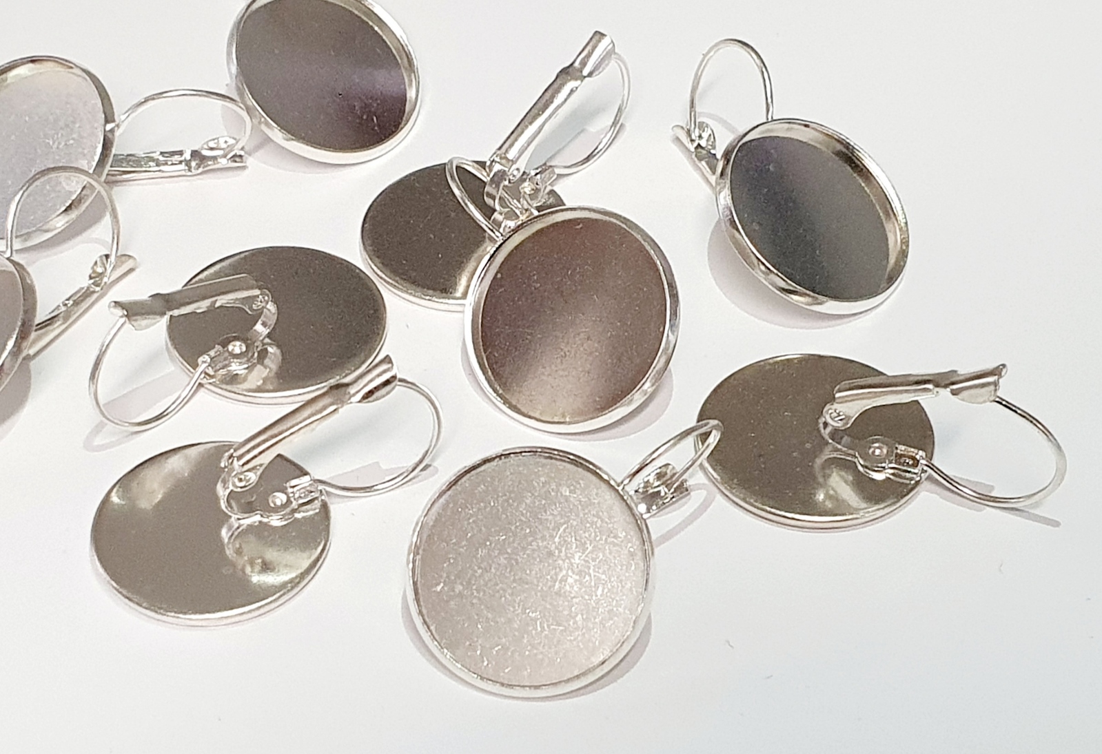 16mm Lever Back Earrings Stainless Steel with Bezel  - Non Tarnish