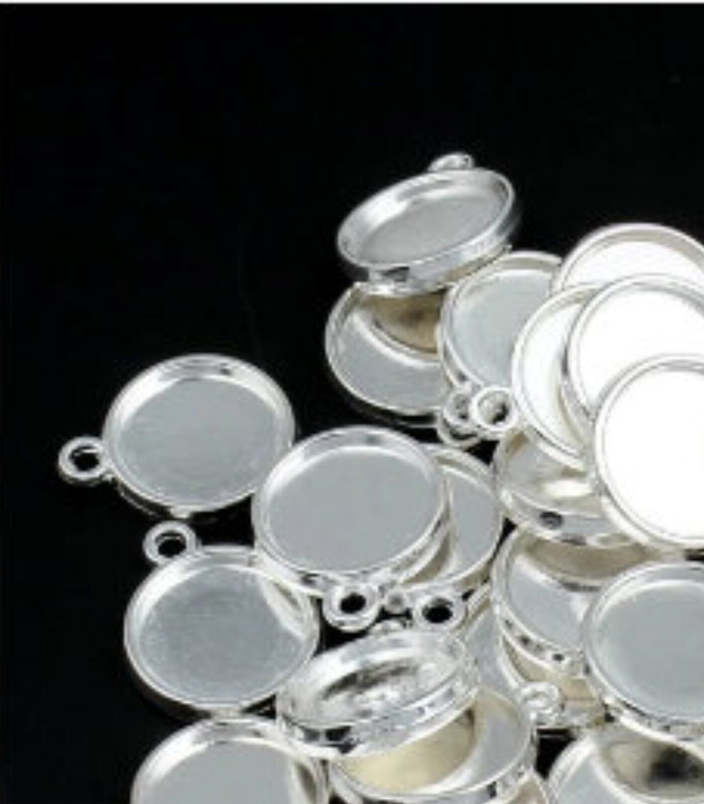 16mm Round Pendants Setting (Loop) - Shiny Silver with Options