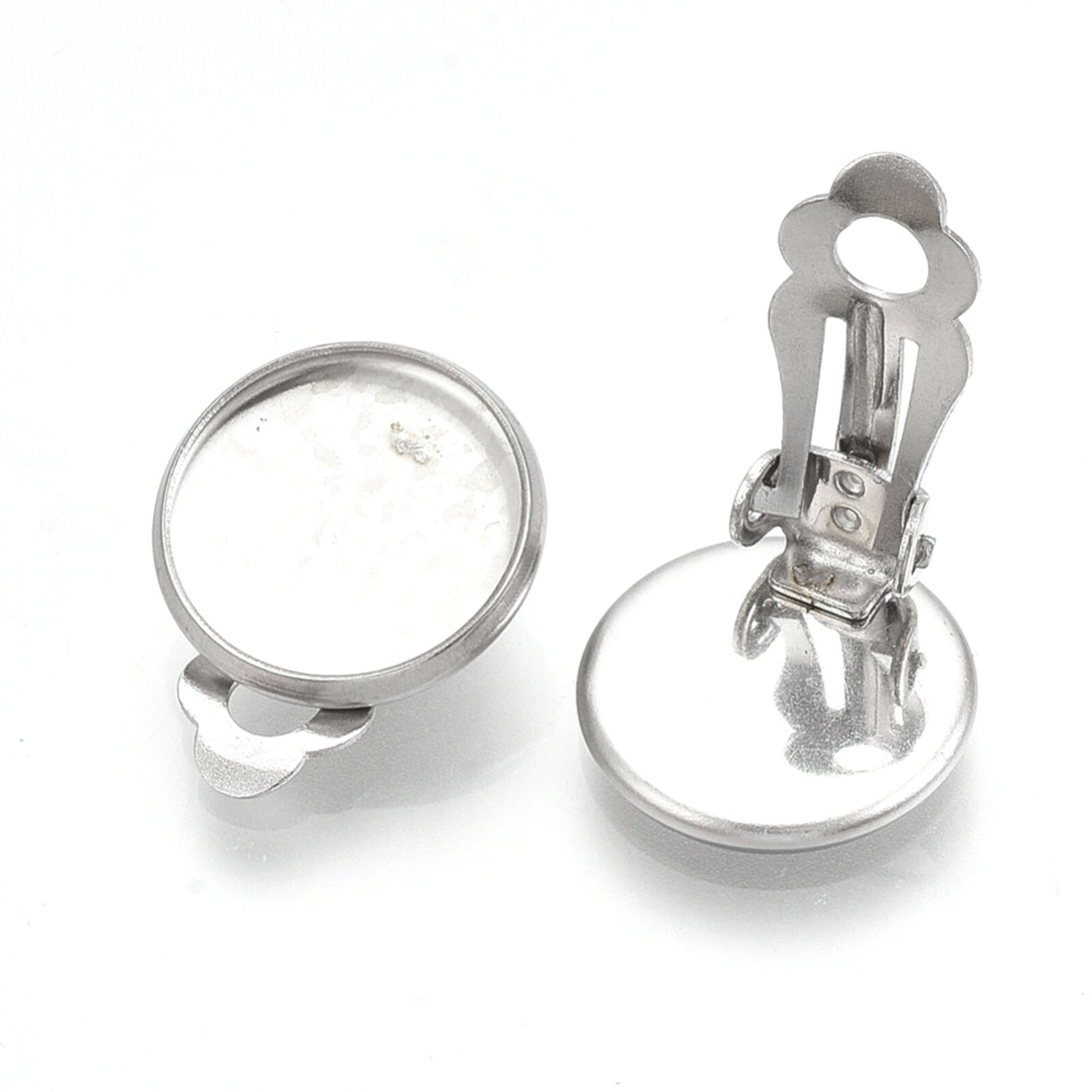 Bezel 12mm Clip On  Earrings - 304 Stainless Steel - Non Tarnish