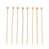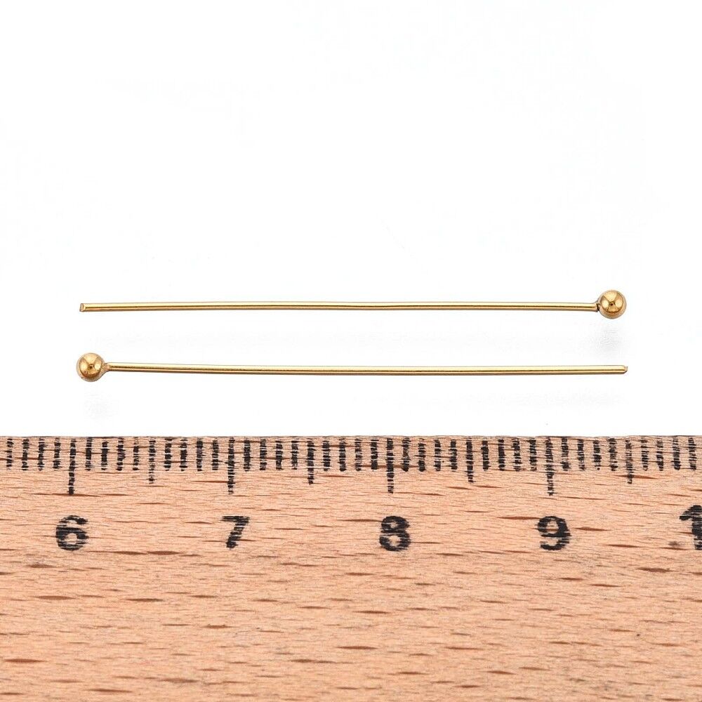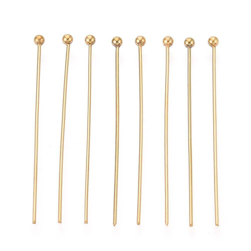 18k Gold Plated Head Pins 50mm, Ball Head: 2mm, 30