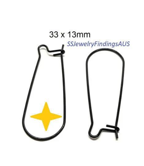 2 Pairs Black Tone Stainless steel kidney earwire earring hooks 33mm Hypoallergenic
