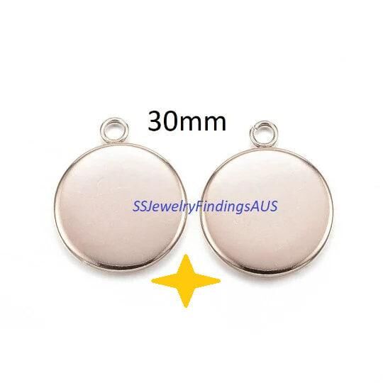 2 Pieces Stainless Steel 30mm Round Bezel Frame Pendant Settings Rose Gold Tone Hypoallergenic Tarnish Resistant
