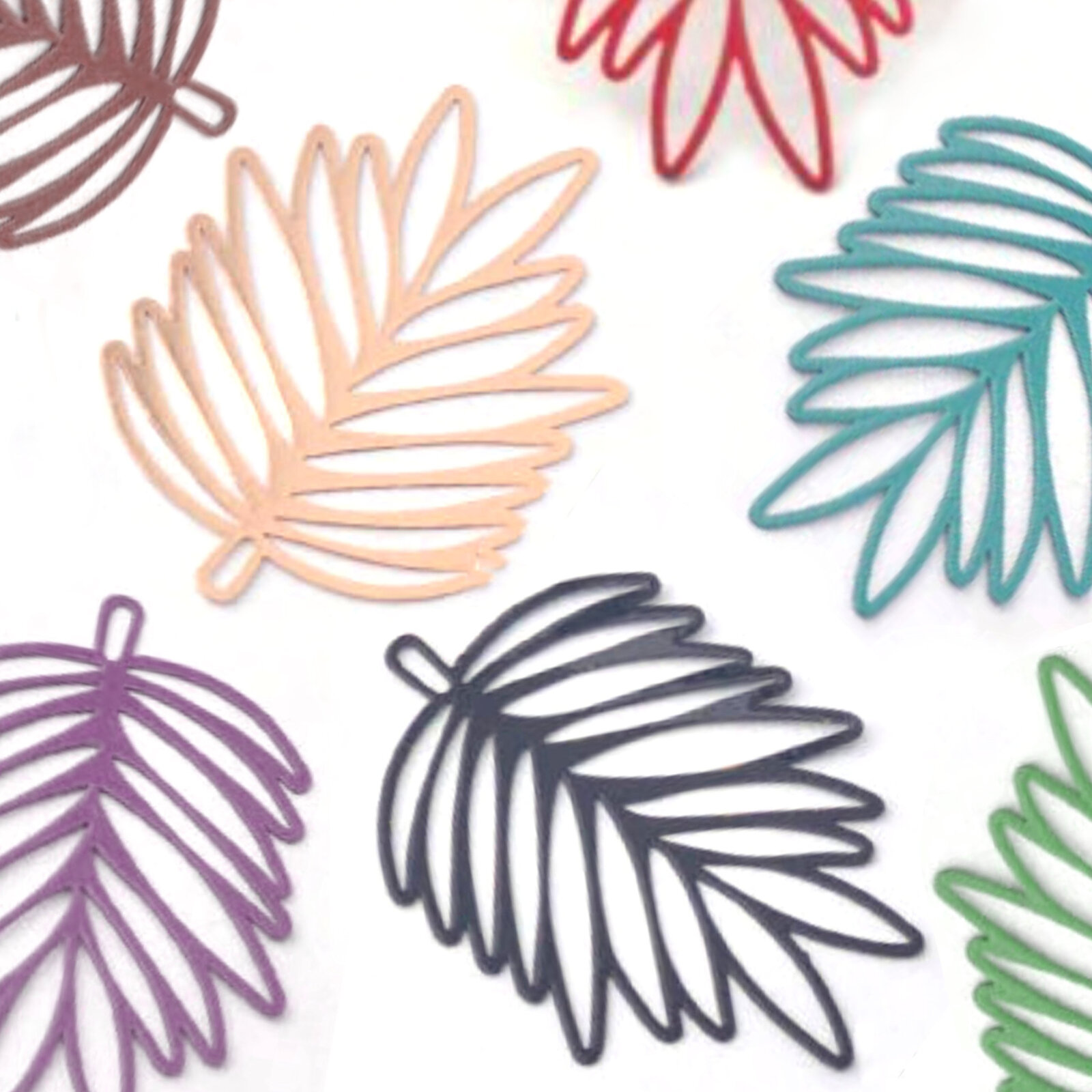 Rose Gold - 49mm Unique Leaf - Filigree Earring Charms