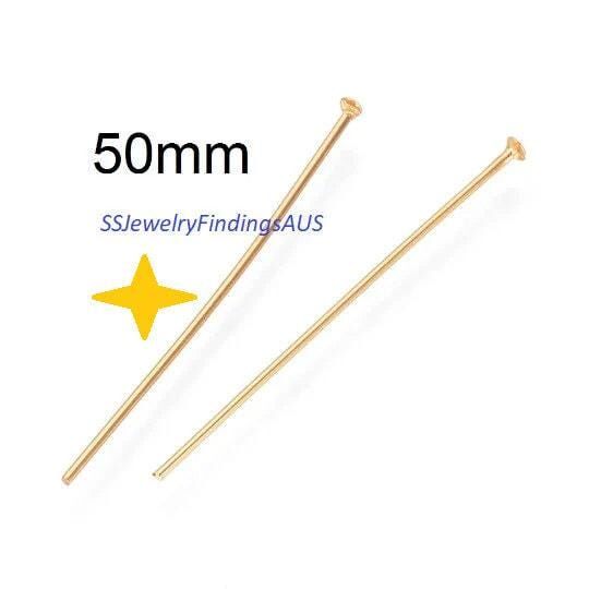 30 Pieces Gold Tone 50mm Stainless Steel Head Pins 21 Gauge 0.7mm Hypoallergenic