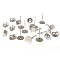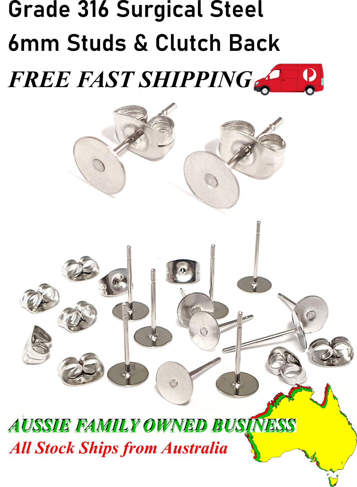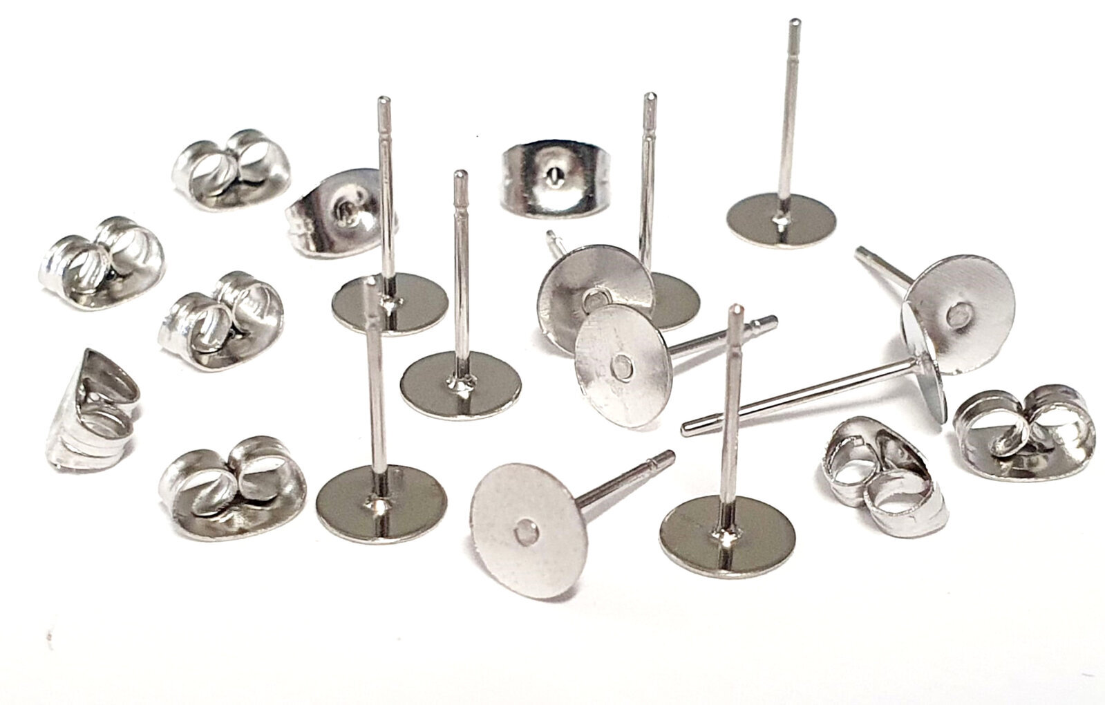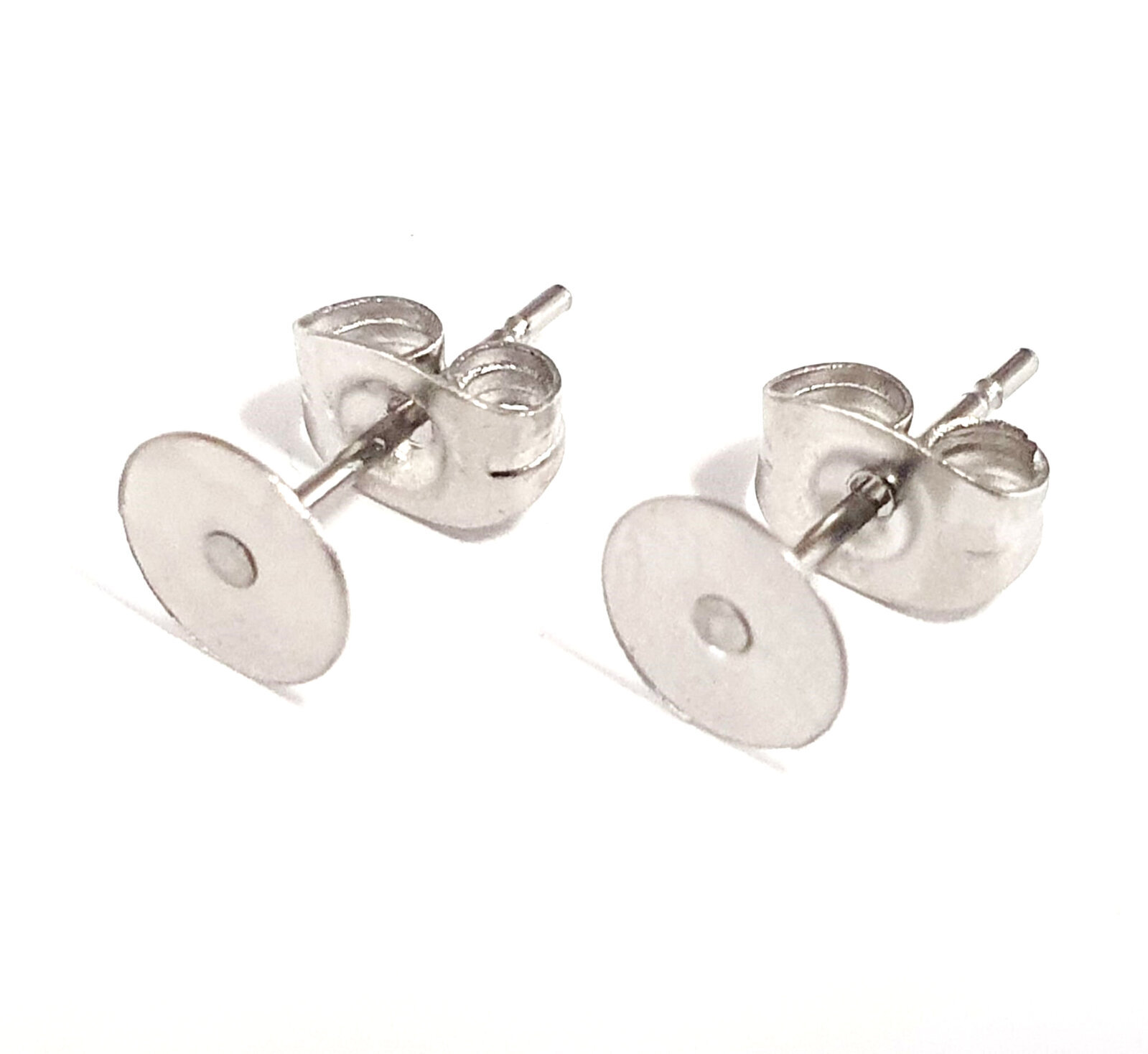 20 x Pad 6mm SURGICAL Stainless Steel 316 Earring Posts & Clutch  - Stud Length under pad 11.1mm