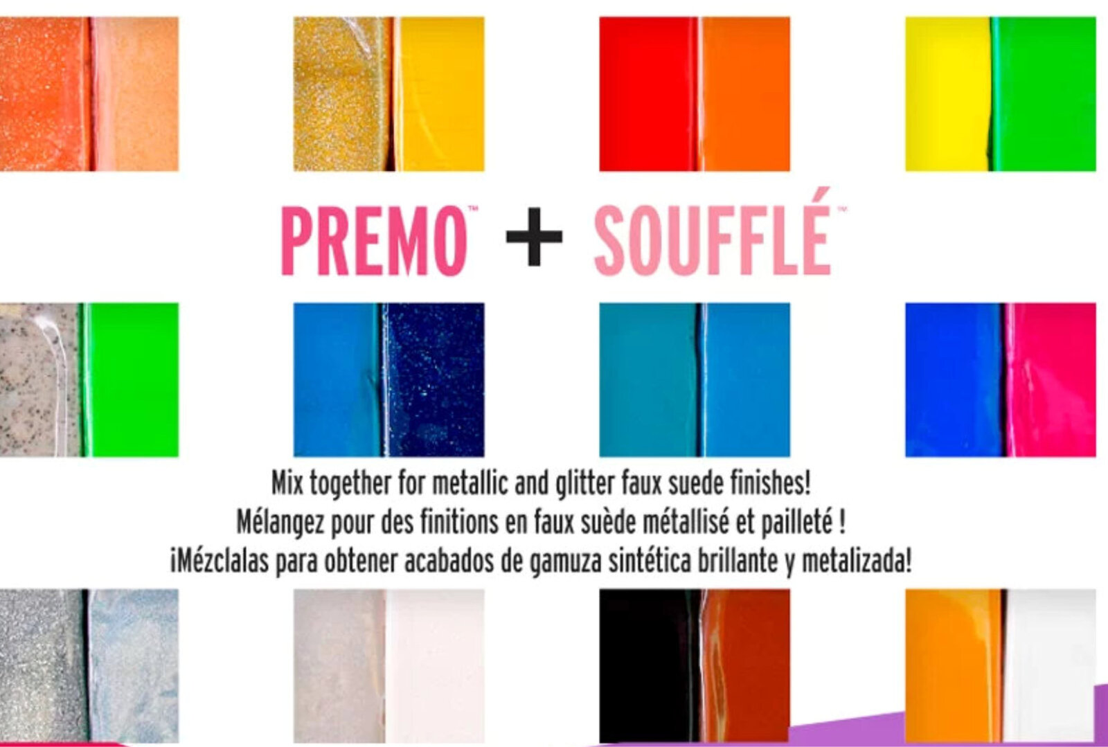 This multi-pack combines two of the most popular clay brands together – Premo™ metallics and glitters and a versatile range of colours from Soufflé! Mix these two brands of clay together to create beautiful jewellery, home décor and mixed media projects!