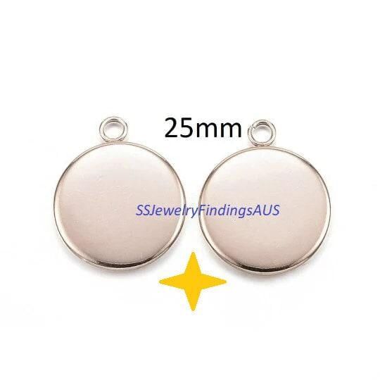 3 Pieces Stainless Steel 20mm Round Bezel Frame Pendant Settings Rose Gold Tone Hypoallergenic Tarnish Resistant