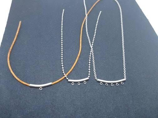We have put these through together with leather cord, ball chain, and cable link chain - they work really well, in our opinion! A personal favorite of ours.