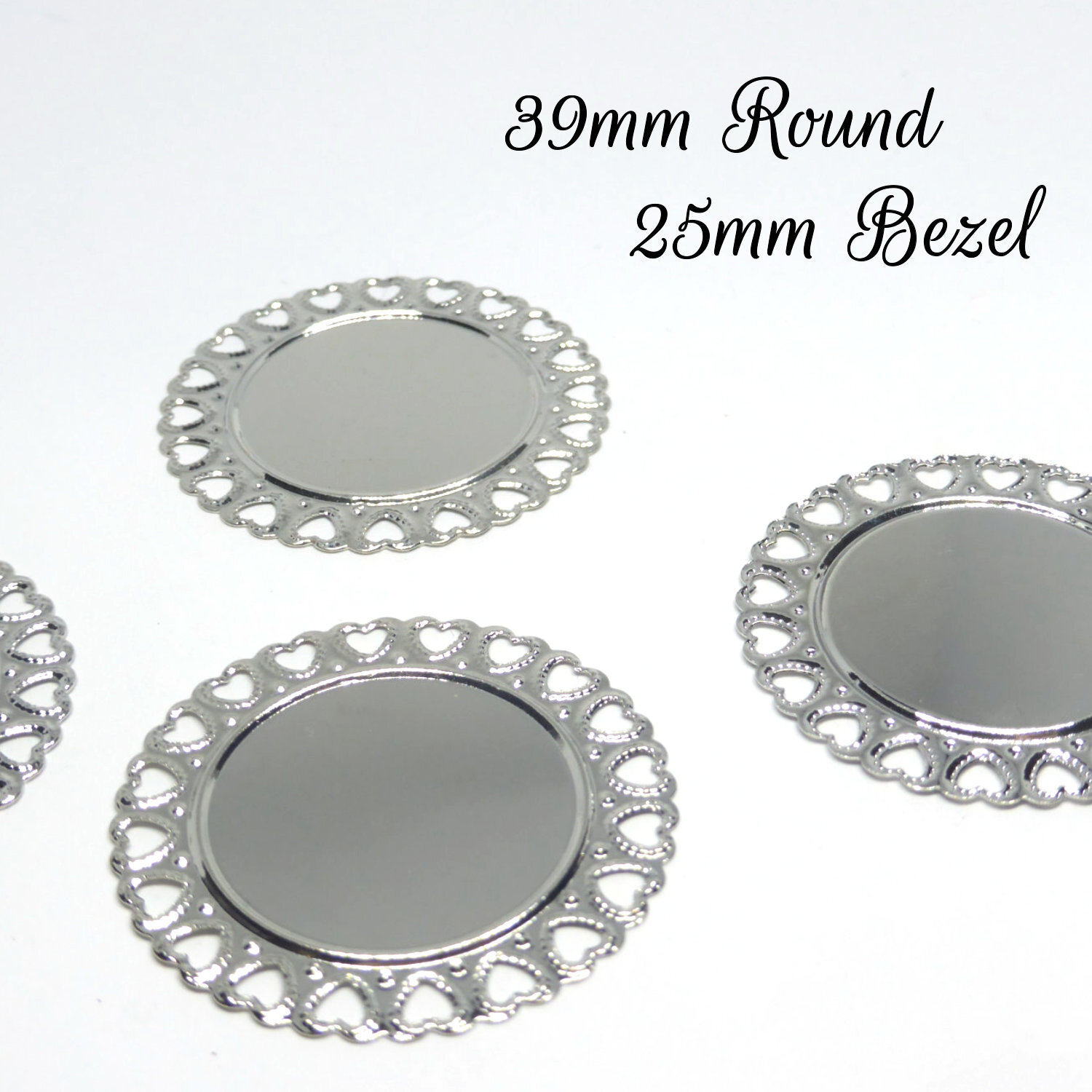 Total width 39mm. Shallow 25mm Bezel fits Clear 25mm glass bought from our store.