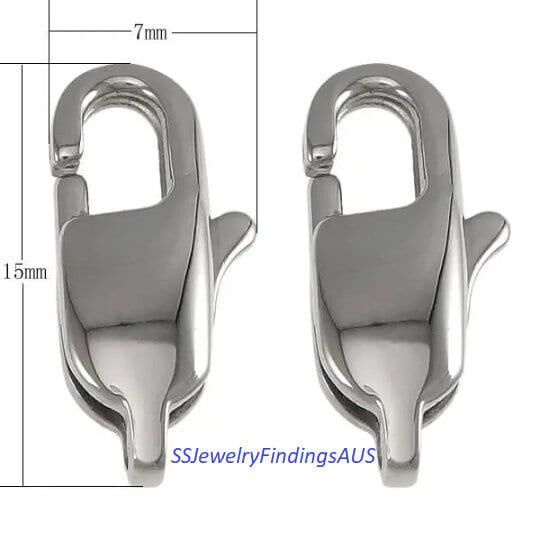 10 Pieces Stainless Steel Lobster Clasp 15mm Hypoallergenic Tarnish Resistant - jewellery making supplies Australia