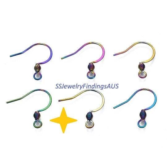 5 Pairs Stainless steel hook earwire with 3 x 2mm Coil Anodized and Plated Hypoallergenic Tarnish Resistant