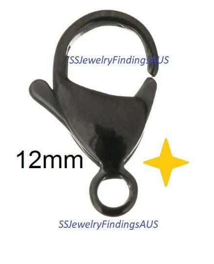 5 Pieces Black Tone Tone Stainless Steel Lobster Clasp 12mm Hypoallergenic