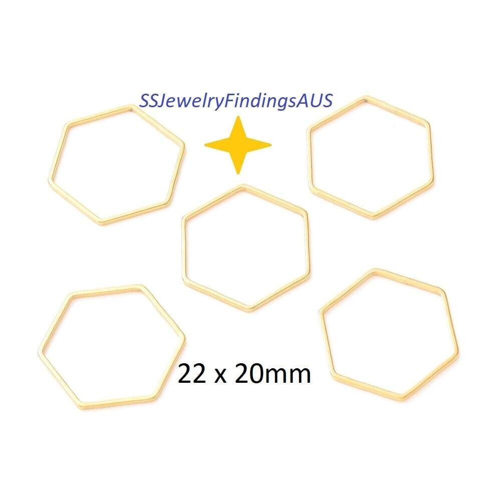 5 Pieces Gold Plated Stainless Steel Hexagon Linking Ring 20x22mm Hypoallergenic Tarnish Resistant