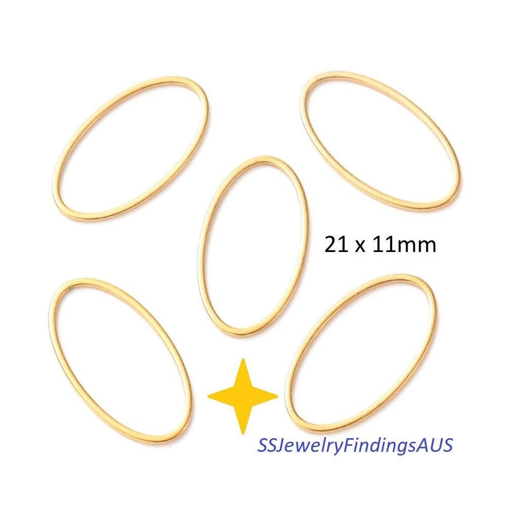 5 Pieces Gold Plated Stainless Steel Oval Linking Ring 21x11mm Hypoallergenic Tarnish Resistant