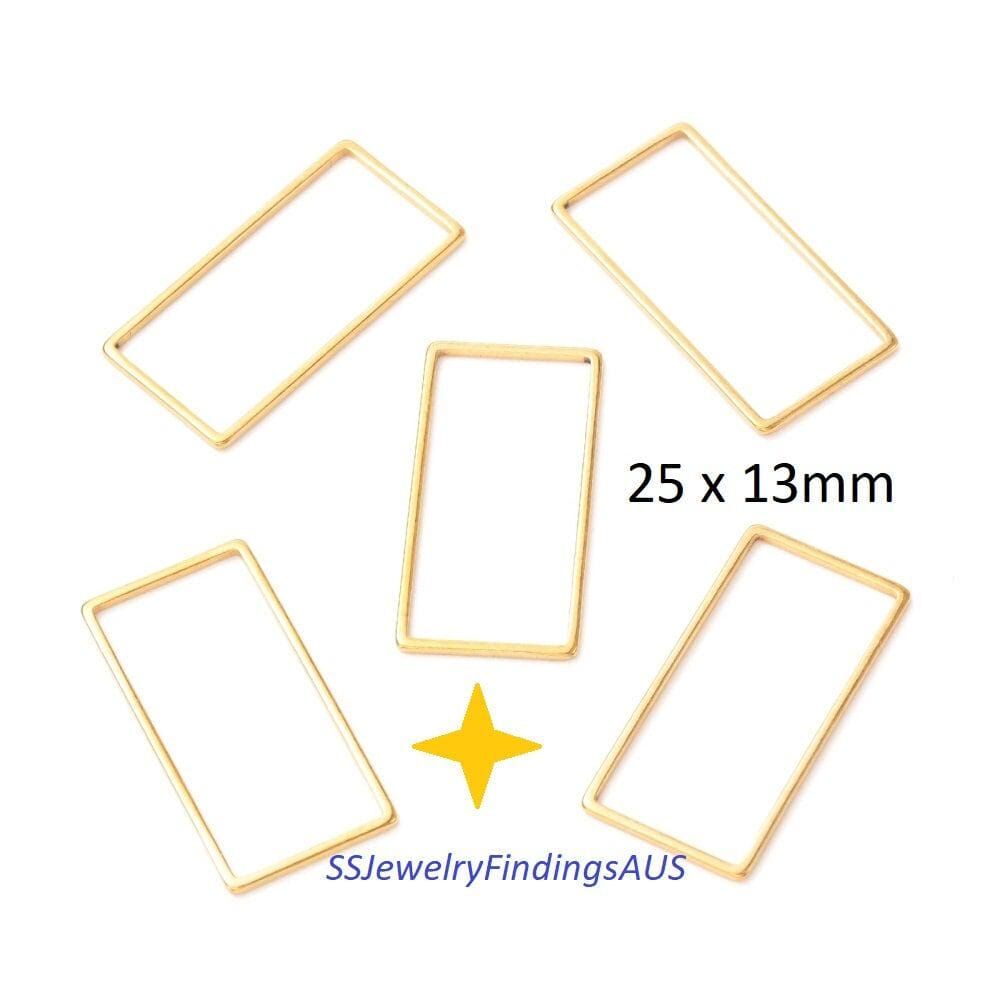 5 Pieces Gold Plated Stainless Steel Rectangle Linking Ring 25x13mm Hypoallergenic Tarnish Resistant