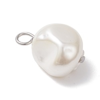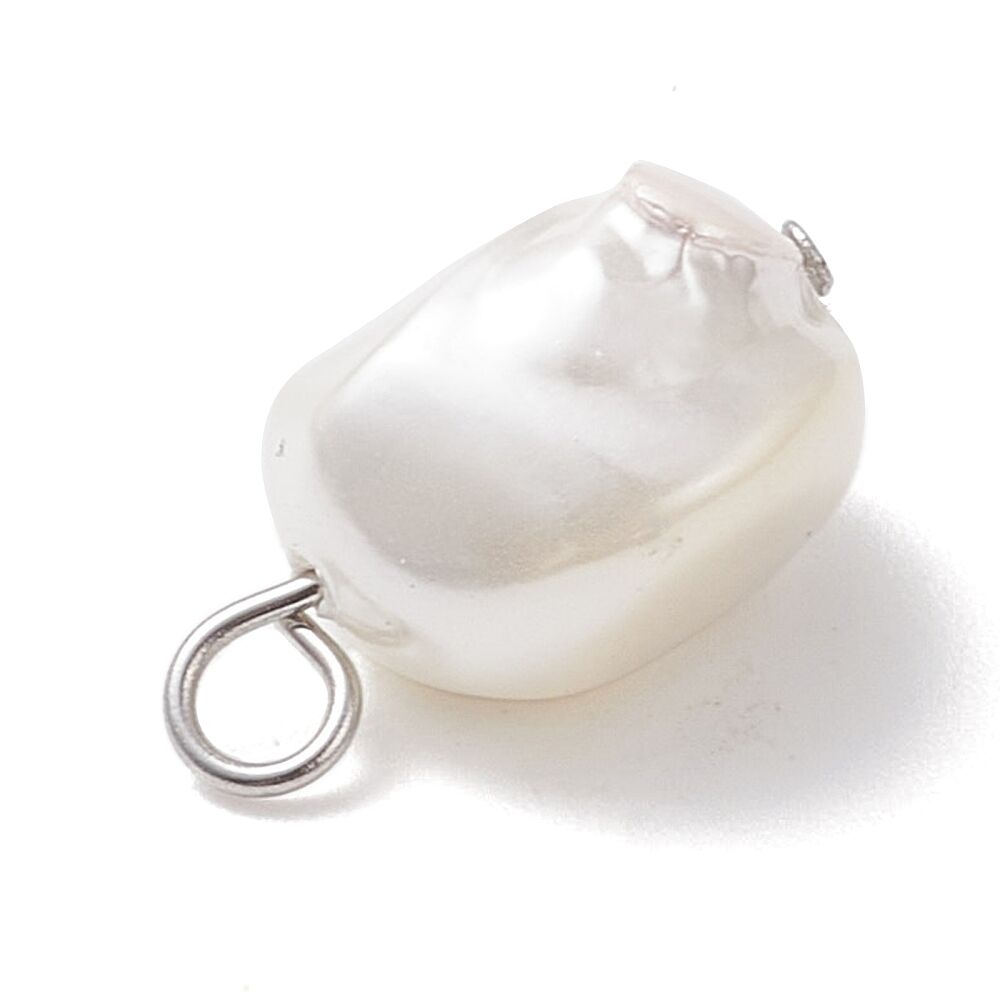 Six Pieces -  Pearl Nuggets Charms - Irregular 9-15mm on Stainless Steel Loop