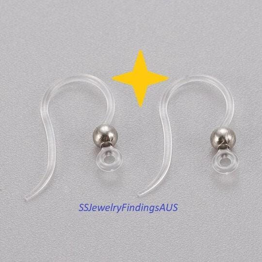 10 Pairs Plastic Silicon Earring Hooks with 3mm stainless steel Bead Hypoallergenic Tarnish Resistant