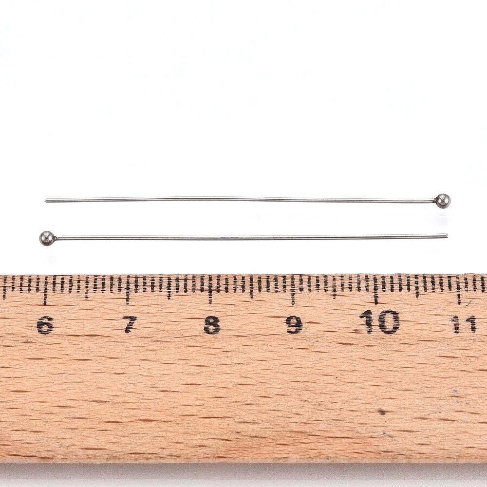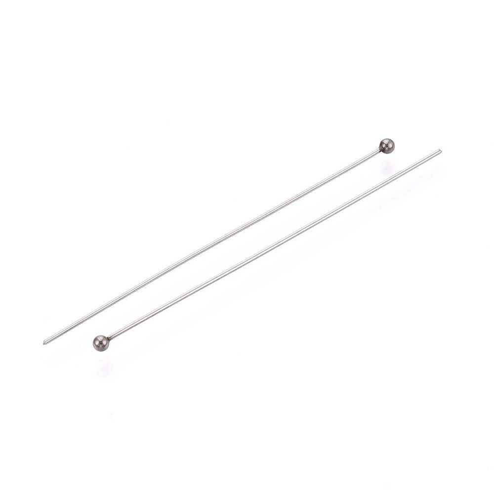 Silver Head Pins: Ball Head 1.8mm Length 70mm - Brass Base 21 gauge 50 Pieces