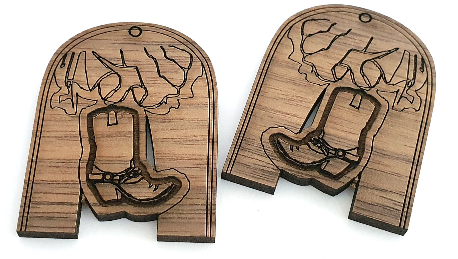 2 x 40mm LongHorn Cutout Earring Pendants - Walnut