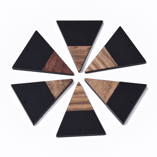 2 x 28mm Half & Half Resin & Wood - Teardrop - Black